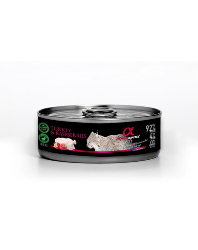 ALPHA SPIRIT konservai katėms su kalakutiena ir avietėmis - visavertis šlapias ėdalas visų veilsių katėms.