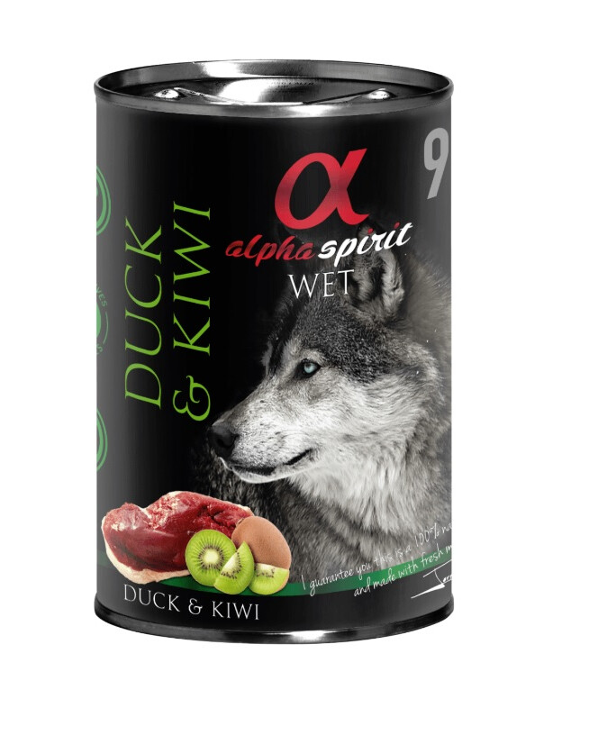 ALPHA SPIRIT konservai šunims su antiena ir kiviais - visavertis šlapias ėdalas visų veilsių šunims.