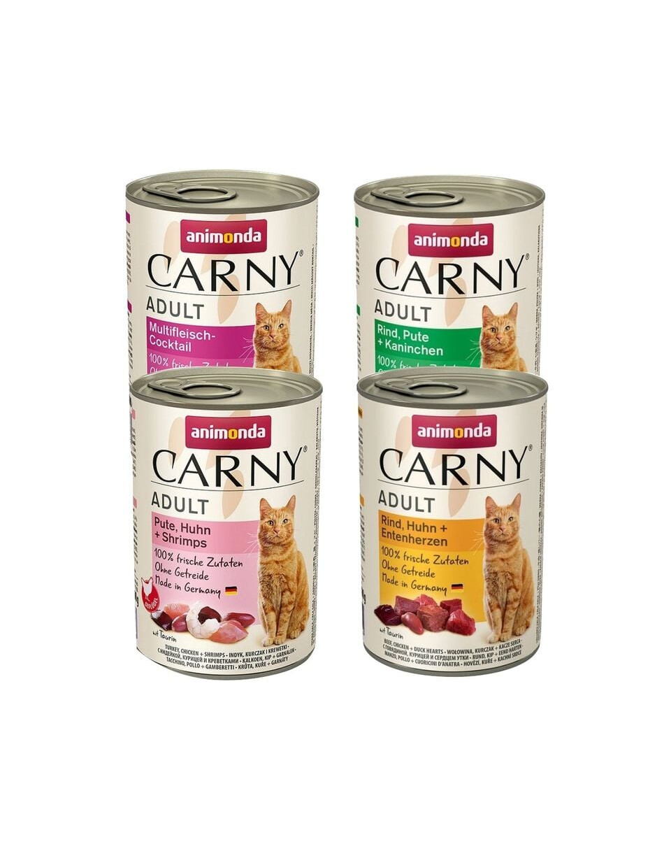 "Animonda Carny" mėsos mišinys yra visavertis kačių maistas. Aukščiausios kokybės atrinkti ingredientai, tik šviežia mėsa ir nepakartojamas skonis. Ėdalo sudėtyje nėra sojos, dažiklių ir augalinių užpildų.