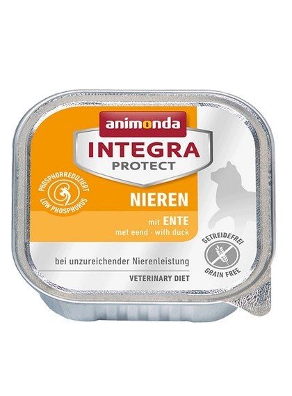 Ančių drėgnas ėdalas suaugusioms katėms, skirtas inkstų funkcijai palaikyti esant lėtiniam inkstų nepakankamumui.