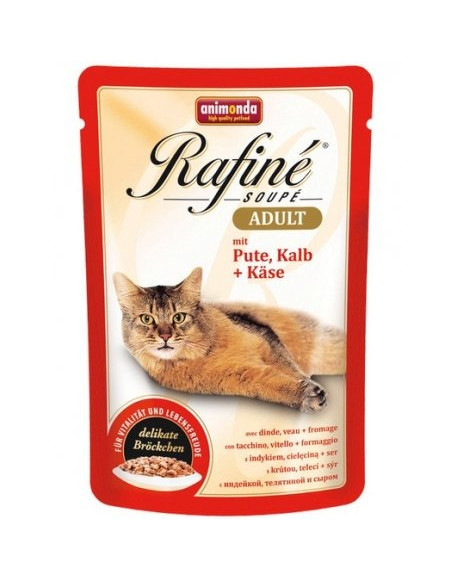 ANIMONDA Rafiné Soupé Adult su veršiena, kalakutiena ir sūriu - skanūs, maži mėsos gabaliukai suaugusioms katėms.