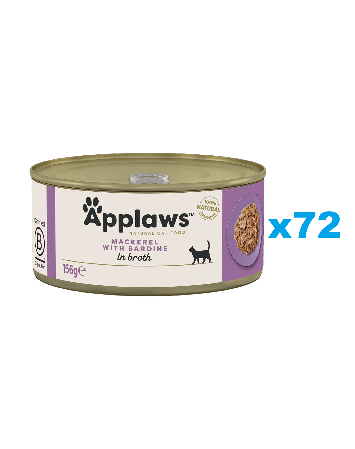 Skumbrė 50 %, sardinės 25 %, žuvų sultinys, ryžiai.