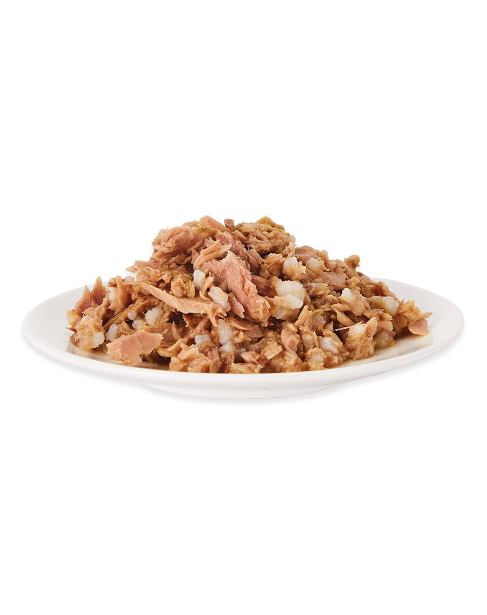 Sudėtis: tuno filė 75 %, ryžiai 6 %, žuvies sultinys 19 %. Be priedų.