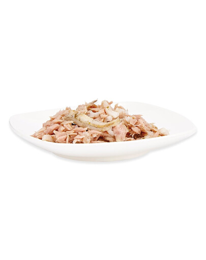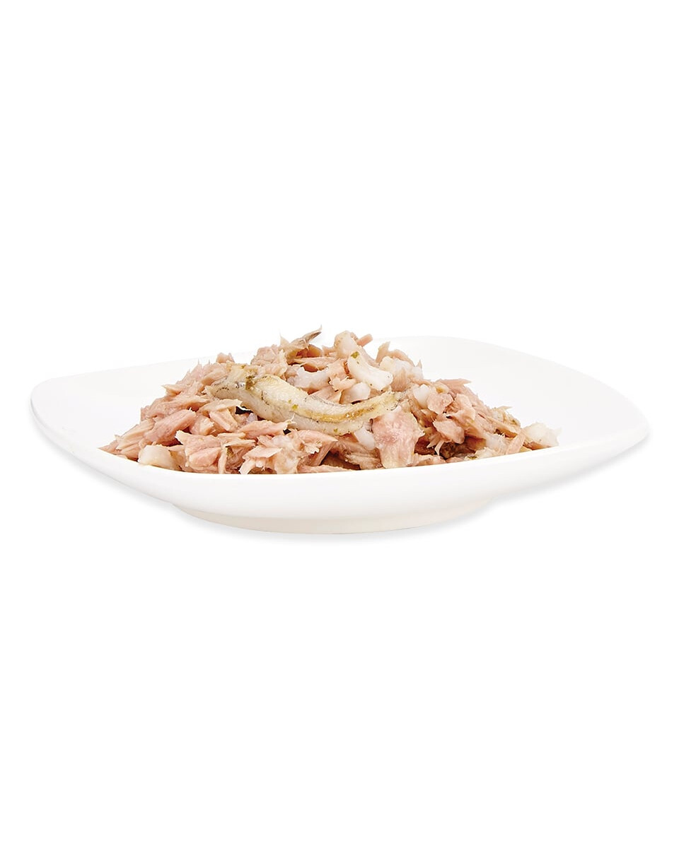 Sudėtis: tuno filė: Sudėtis: 60 %, žuvies sultinys: Sudėtis: tunas: 24 %, ančiuviai: 5%, jūros dumbliai: 5%, ryžiai: 2%.