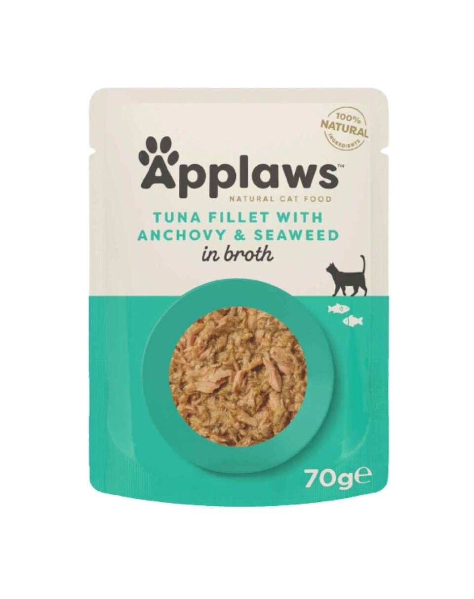 Žuvies sultinys, kuris sudaro 1/4 pakuotės, užtikrina, kad katė gautų skysčių, o natūrali maisto tekstūra įtikins daugumą augintinių. Įdomu tai, kad "Applaws" maiste naudojamos žuvys nėra įtrauktos į jokius nykstančių rūšių sąrašus ir yra gaudomos tinklais, apsaugančiais nuo delfinų.