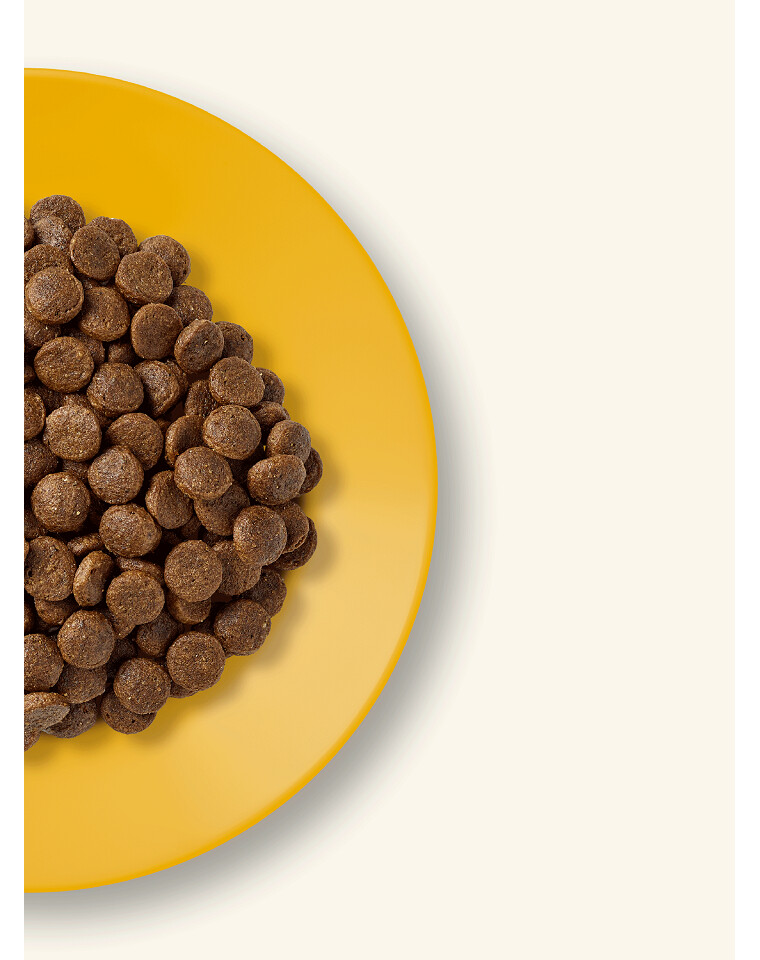 Sudėtis: vištienos miltai (67 %), šviežiai malta paukštiena (12 %) (natūralus gliukozamino ir chondroitino šaltinis), bulvės, cukrinių runkelių minkštimas, alaus mielės, paukštienos padažas (1 %), augalinės celiuliozės skaidulos (0,03 %), lašišų aliejus, kokosų aliejus (natūralus vidutinės grandinės riebalų rūgščių trigliceridų šaltinis), vitaminai ir mineralinės medžiagos, džiovinti kiaušiniai, natrio chloridas, kalcio karbonatas, jūros dumbliai, spanguolės, dl-metioninas, kalio chloridas, juka ekstraktas, citrusinių vaisių ekstraktas, rozmarino ekstraktas