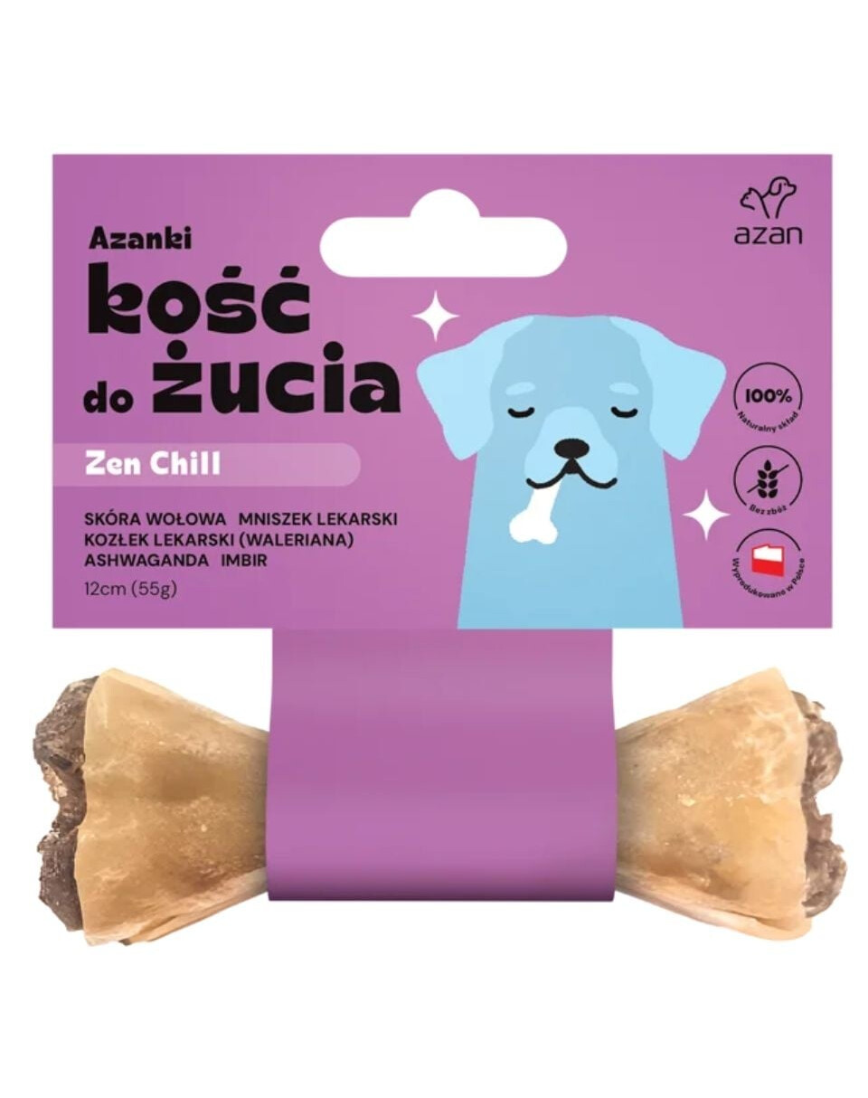 Azanki Kramtoma ZEN CHILL yra aukštos kokybės, 100% natūralus skanėstas, sukurtas suaugusiems mažų ir vidutinių veislių šunims. Produktas patenkina natūralų kramtymo ir kramtymo poreikį, tuo pačiu padeda nuraminti ir palaikyti emocinę pusiausvyrą šuns dėka raminančių žolelių, kurios palaiko bendrą organizmo būklę.