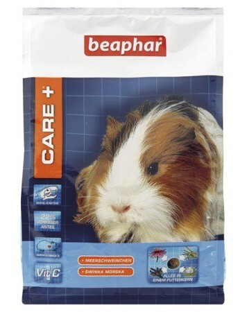 "Care+ Guinea Pig" - tai itin skanus, puikiai subalansuotas, ekstruduotas "Super Premium" ėdalas jūrų kiaulytėms. Kiekvienos granulės yra vienodos sudėties (All-in-One), todėl neleidžiama selektyviai valgyti tik skanesnius ingredientus. Granulių struktūra ir kietumas užtikrina natūralų dantų dilimą (Dental Function). Receptūra, kurioje yra ląstelienos, vitamino C ir subalansuota Omega-6 ir Omega-3 polinesočiųjų riebalų rūgščių (iš kukurūzų, kviečių, sojų ir linų sėmenų) dozė, puikiai atitinka natūralius jūrų kiaulyčių mitybos poreikius.
