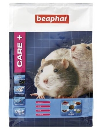 "Care+ Rat" - tai itin skanus, puikiai subalansuotas, visavertis sausas ėdalas žiurkėms. Receptūra buvo sukurta kartu su veterinarijos gydytojais, mitybos specialistais ir žiurkių augintojais. Specialus gamybos procesas (ekstruzijos būdu) užtikrina aukštą baltymų virškinamumą, iš pašaro pašalinamos bakterijos, pelėsiai ir virusai, todėl šis produktas yra sveikas, saugus ir maistingas maistas. Kiekviena granulė yra identiškos sudėties, todėl visiškai pašalinamas selektyvaus tik tam tikrų ingredientų valgymo reiškinys. Gyvūnai suėda beveik visą maistą ir nepalieka jokių likučių, o šeimininkai gali būti tikri, kad gauna visas reikalingas medžiagas. Žiurkėms reikalingi gyvūniniai ir augaliniai baltymai. Pašaruose esančiuose baltymuose yra daug nepakeičiamųjų aminorūgščių, svarbių tinkamam raumenų formavimuisi. Care+ turi mažai riebalų ir subalansuotą riebalų rūgščių Omega 6 ir Omega 3 santykį. Pašaruose yra natūralių sudedamųjų dalių, tokių kaip ežiuolė, spirulina ir Yucca schidigera, taip pat chelatinių mineralų. FOS ir MOS derinys palankiai veikia žarnyno florą.