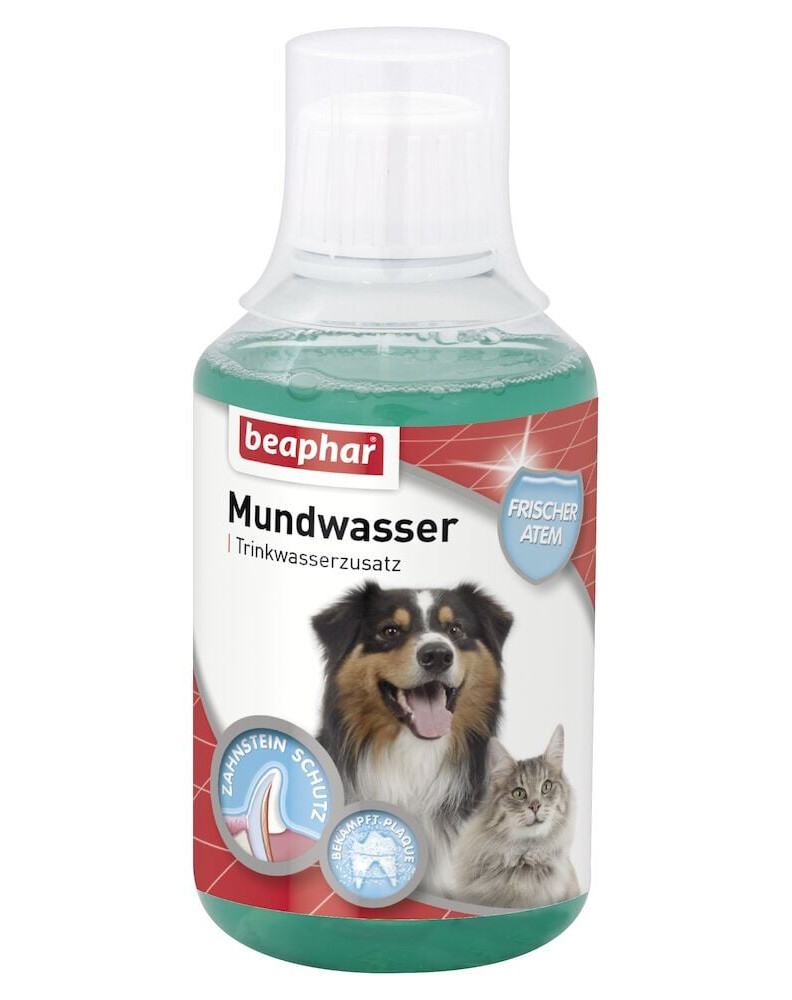 Bakterijos ir maisto likučiai yra šunų apnašų ir dantų akmenų susidarymo priežastis. Dėl to pažeidžiamos dantenos ir dantys, o tai savo ruožtu sukelia blogą burnos kvapą. Beaphar burnos ir dantų priežiūros skysčio sudėtyje yra specialių ingredientų, kurie sėkmingai mažina bakterinių apnašų susidarymą ir mikroorganizmų dauginimąsi, todėl užkerta kelią dantų akmenų susidarymui, ėduonies vystymuisi ir periodonto ligoms.