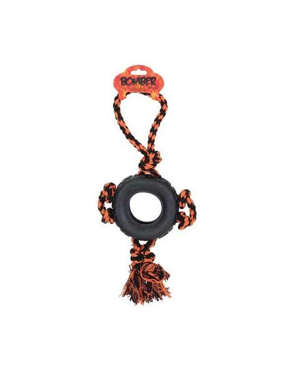 Mus labai maloniai nustebino žaislas, kuris yra padoriai pagamintas, o guma ir laidas atrodo tvirti. Gavome oranžinės spalvos padangą, kuria labai džiaugiamės, nes ši spalva yra daug geriau matoma. Jį lengviau rasti žolėje (blogiau rudeniniuose lapuose), be to, mums patinka spalvingi šunų žaislai (kilimas atrodo daug įdomesnis, išklotas įvairiaspalviais paklydėliais). "Bomber" yra gana sunkus, o tai turi ir privalumų, ir trūkumų. Svoris yra privalumas metant žaislą, nes jis skrieja toliau, o du mūsų šunys be problemų nešioja sunkesnius daiktus, tačiau trūkumas yra Coco, kuri nemėgsta sunkių ir gana didelių žaislų. Padangą gana lengva mesti dėl virvelės, o skrydis nenuspėjamas. Tik turite būti atsargūs ir nemesti jo į šunį, nes žaislas yra gana sunkus.