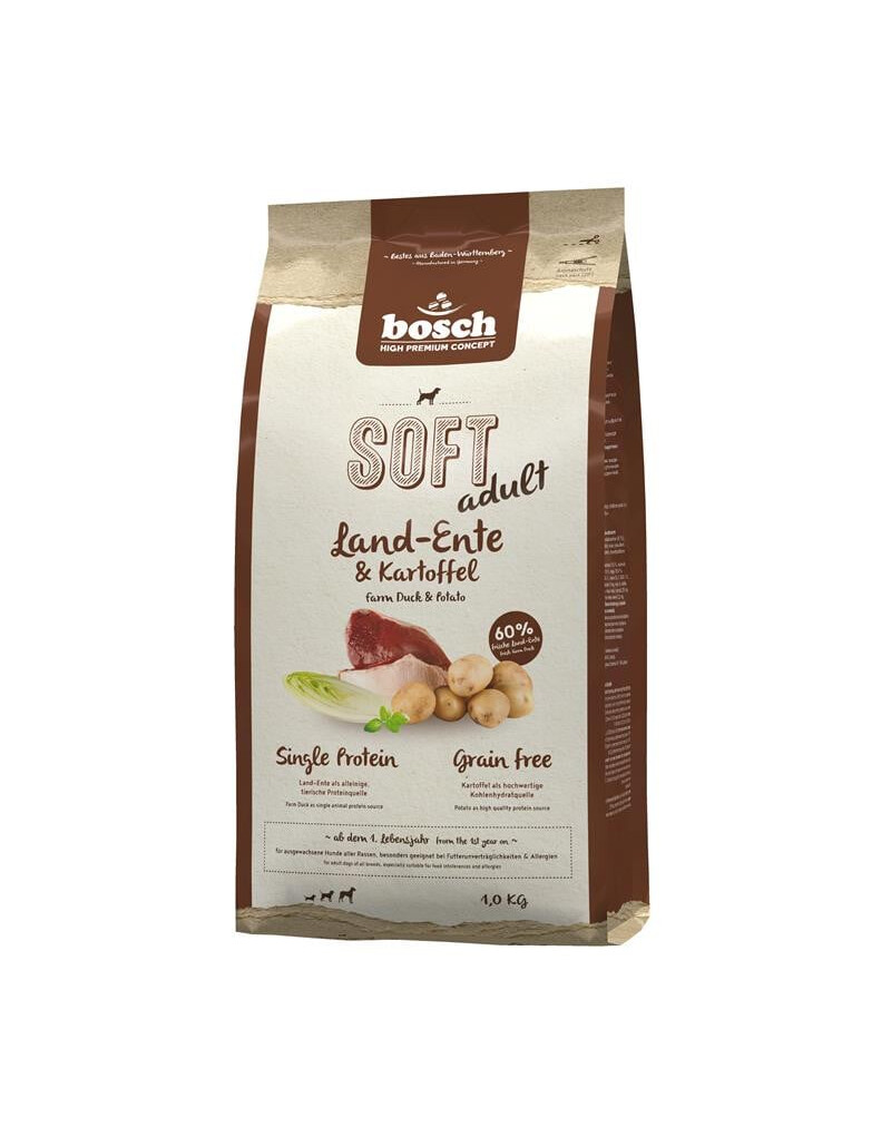 Šviežia ančių mėsa (60 %), bulvių krakmolas, bulvių miltai, bulvių baltymai (7 %), žirniai (džiovinti), hidrolizuoti baltymai (ančių), dikalcio fosfatas, žirnių skaidulos, mielės (džiovintos, sudėtyje yra 0,04 % ß-gliukano), psyllium sėklos, natrio chloridas, džiovintos juka, gliukozaminas, chondroitino sulfatas, cikorijų milteliai (0,02 %).