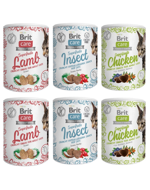 BBRIT Care skanėstai katėms Superfruits Chicken - begrūdis pašarų papildas suaugusioms katėms. Vištiena, šaltalankiai, mėlynės.