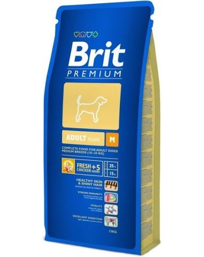 Šunų maistas Brit Premium Adult M, sukurtas specialiai vidutinio dydžio veislių (10 –25 kg) suaugusiems šunims, pasižymi tokiomis savybėmis, turinčiomis įtakos šunų sveikatai ir būklei: