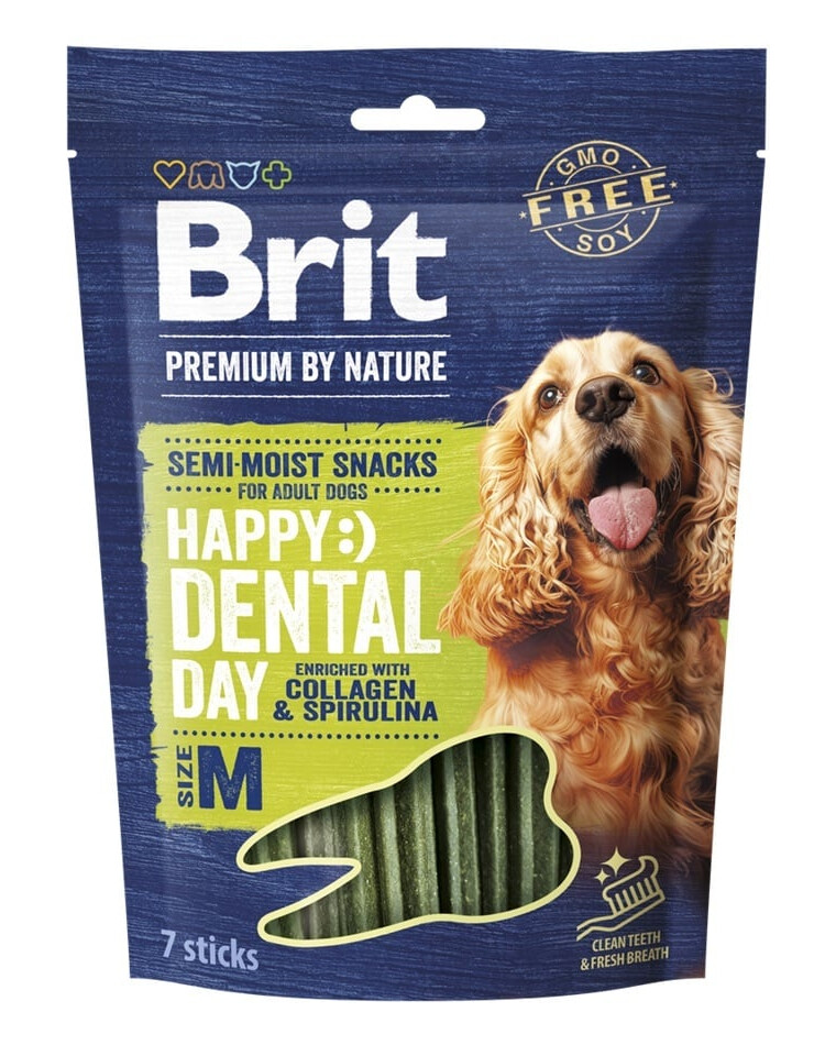 Brit Premium by Nature Semi-moist Snack Dental Stick M yra funkcionalus dantų skanėstas mažiems ir vidutiniams šunims. Kiekviename pakete yra 7 pusiau drėgnos lazdelės, kurios padeda rūpintis burnos higiena, gaiviu kvapu ir jūsų augintinio dantų sveikata.