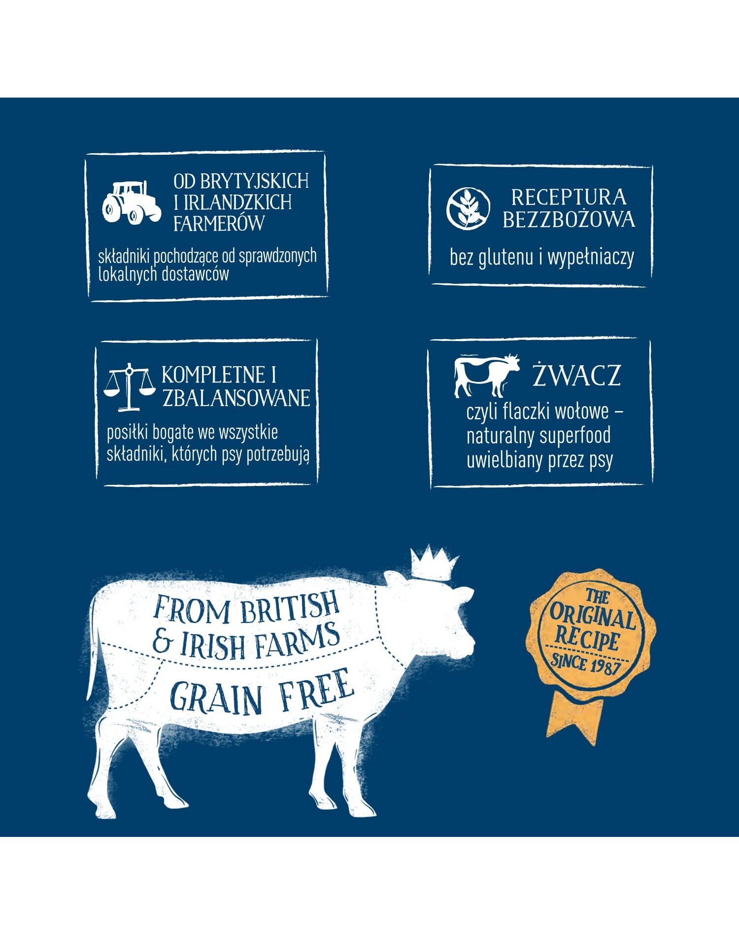 - Ingredientai iš patikrintų vietinių Didžiosios Britanijos ir Airijos ūkininkų.