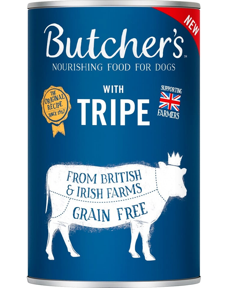 "Butcher's Original Tripe" - tai visavertis maistas, praturtintas jautienos prieskrandžiais, skirtas patenkinti kasdienius augintinių poreikius. Visi produktai gaminami iš natūralių ingredientų ir yra supakuoti į aplinkai nekenksmingas pakuotes.