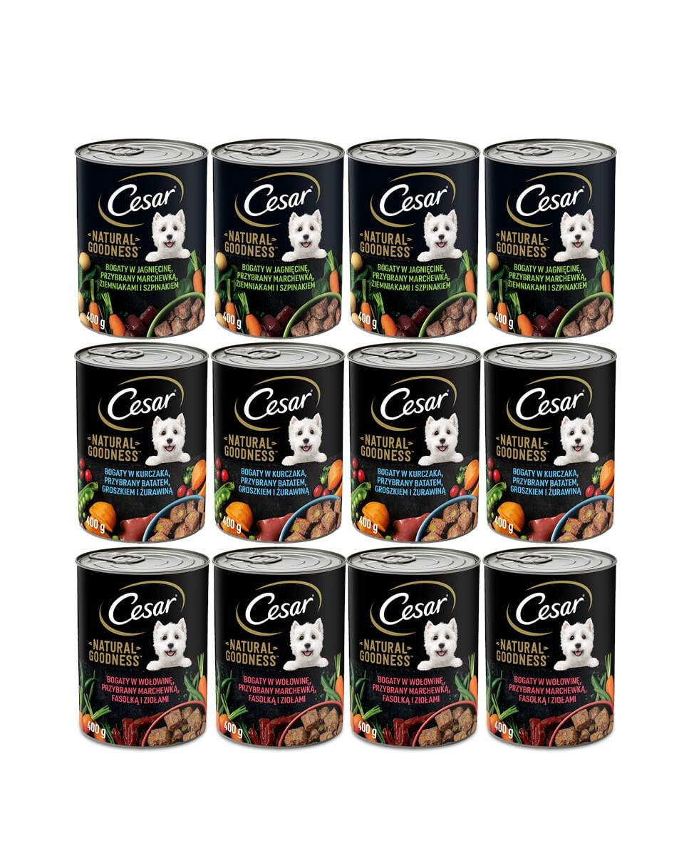 Cesar® Natural Goodness Chicken Rich Wet Food yra visavertis pašaras suaugusiems šunims, pagamintas iš 100 % natūralių ingredientų, vitaminų ir mineralų. Jis paruoštas pagal kruopščiai atrinktą receptą, kurį kuriant dalyvavo WALTHAM™ Gyvulininkystės instituto mitybos specialistai ir veterinarijos gydytojai. Šį šunų ėdalą galima šerti kartu su sausu ėdalu arba kaip atskirą gardų patiekalą. Jo sudėtyje yra ne tik mėsos ir gyvulinės kilmės produktų, bet ir skanių daržovių bei žolelių.