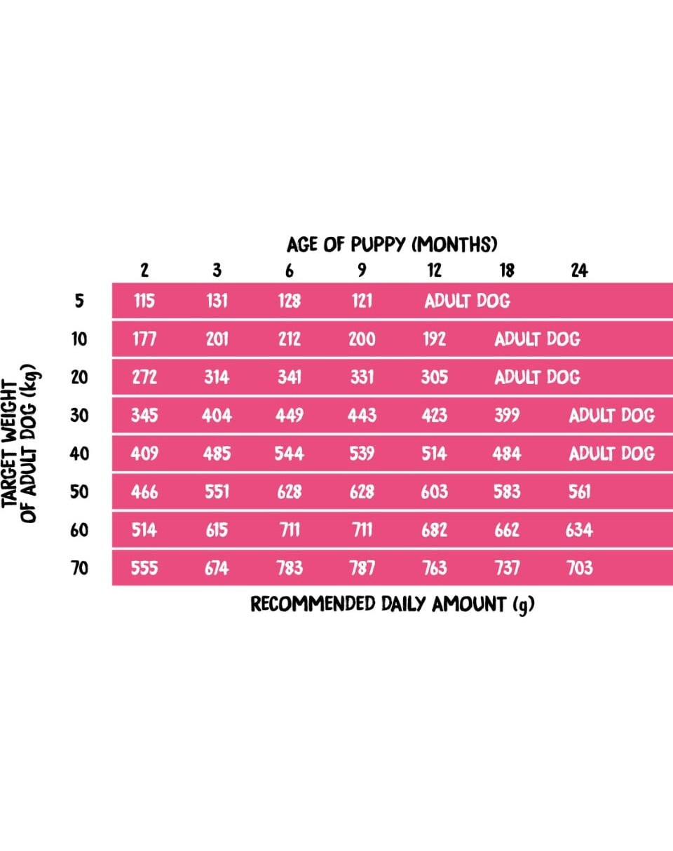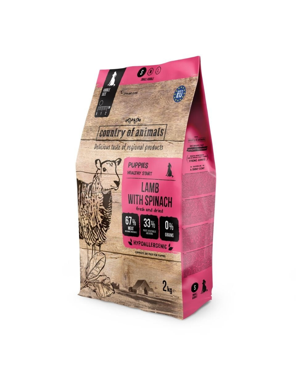 Ėriuko mėsa yra švelni ir sveika, išsiskirianti linolo rūgšties kiekiu, kuris turi savybių slopinti vėžio procesus. Liesos kalakutienos ir baltymingos vištienos priedas sudaro puikų meniu jaunam šuniui. Receptūroje taip pat yra špinatų — vitamino C ir magnio šaltinis, būtinas intensyvaus augimo laikotarpiu. Be to, folio rūgštis palaiko nervų sistemos funkcionavimą. Tai sveikas startas gyvenimui!
