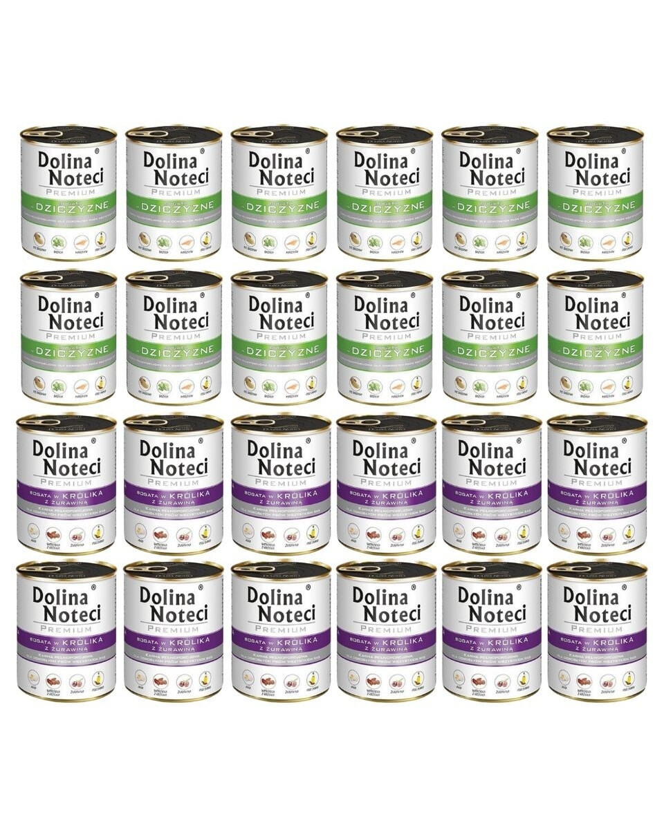 DOLINA NOTECI Mix Aukščiausios kokybės skoniai Gausus elnienos ir triušienos skonis su spanguolėmis 24x800g