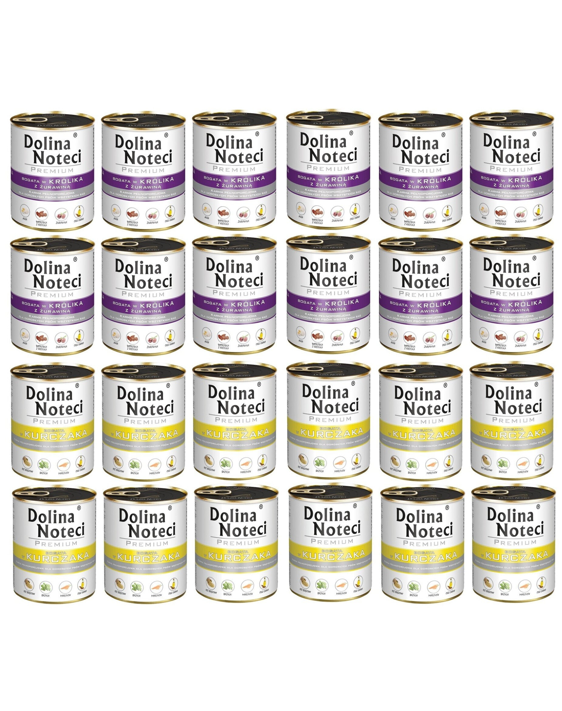 kiauliena 25% (kiauliena, stemplė, širdis), jautiena 22%, (plaučiai, skilviai, tešmuo), triušiena 15% (kepenys), spanguolės 4%, kiaušiniai 3%, kalcio karbonatas, natrio tripolifosfatas, linų sėmenų aliejus 0,2%, psiliumo sėklos, kalio chloridas