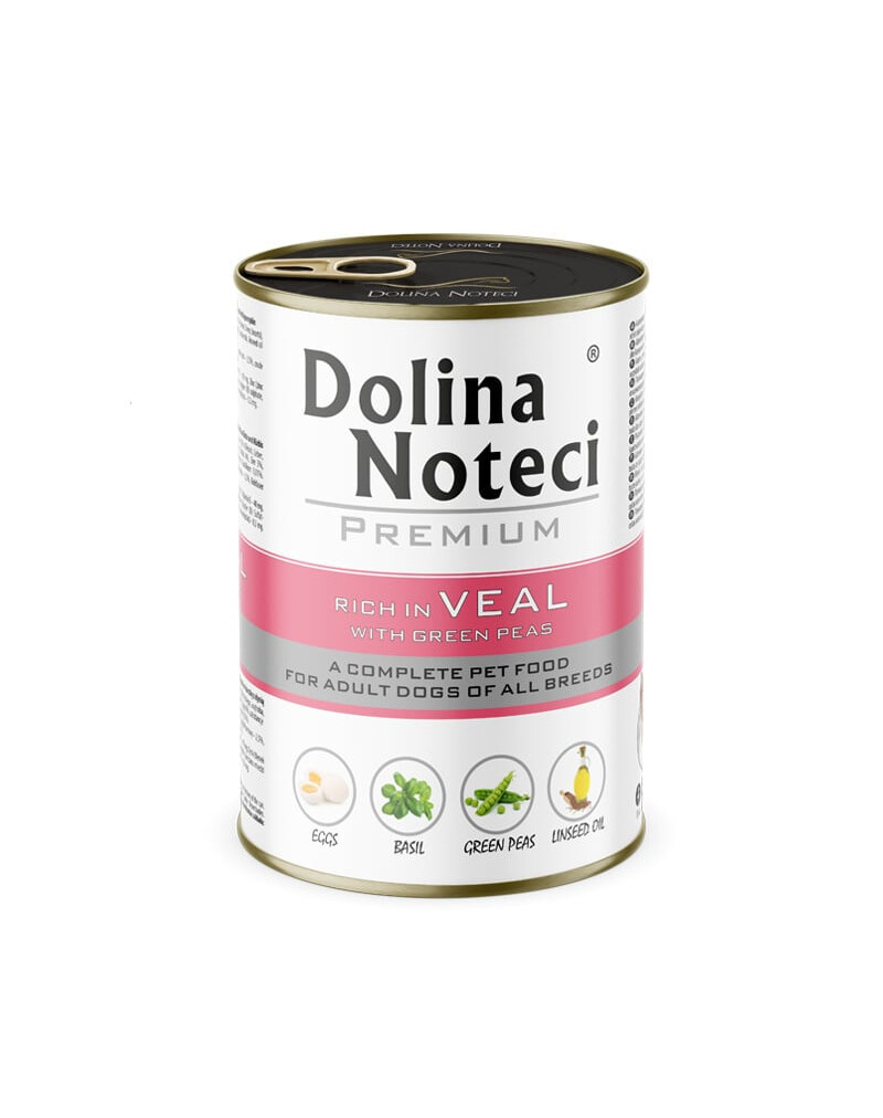 Dolina Noteci Premium yra idealus maistas kasdieniam šuns maitinimui. Liesas veršienos mėsa, turtinga baltymais ir geležimi, palaiko šuns sveikatą ir energiją. Kiaušinių priedas pagerina skonį ir maistinę vertę, o žaliasis žirnis suteikia baltymų, vitaminų K, C ir skaidulų, kurie užtikrina ilgalaikį sotumo jausmą. Linų sėmenų aliejus palaiko odos ir kailio būklę, o psylliumas teigiamai veikia virškinimą.