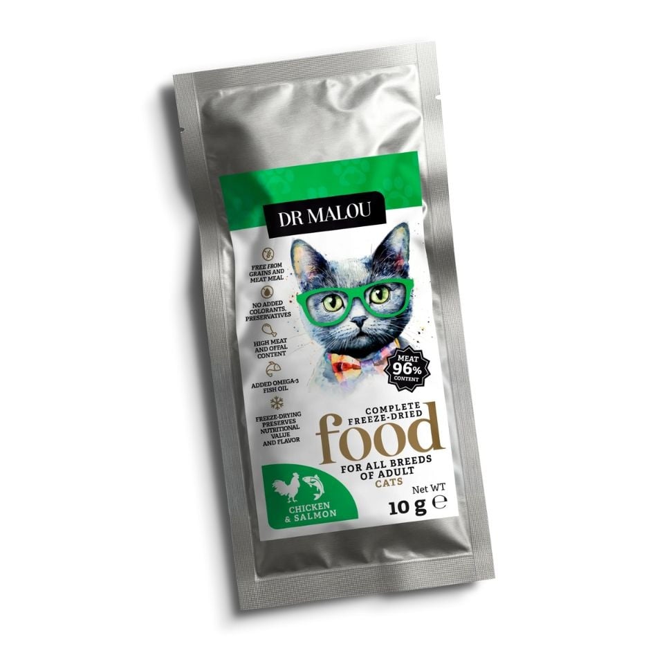 Ieškai maisto, kuris tikrai atitinka tavo katės poreikius? Dr Malou yra pilnavertė liofilizuota karma suaugusioms katėms, pagaminta iš šviežios vištienos ir lašišos mėsos bei subproduktų. Dėl liofilizacijos ingredientai išlaiko maksimalų maistinių medžiagų kiekį, o tavo augintinis gauna energingą, skanų ir natūralų maistą kiekvieną dieną.