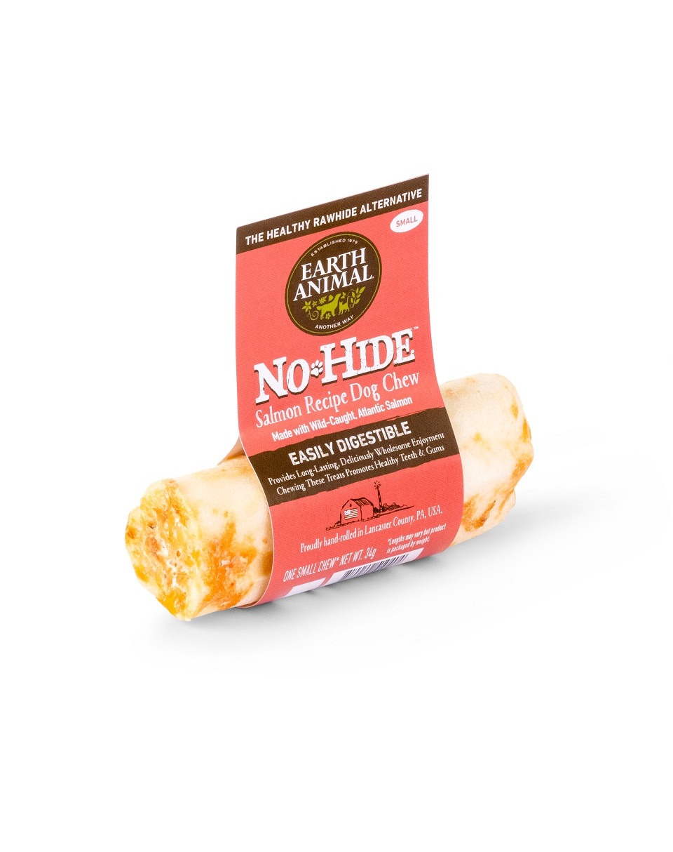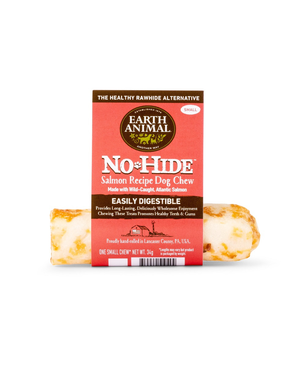 "No-Hides" kruopščiai sumaišyti tik iš 6 ingredientų ir 1 subalansuoto, sprogstamo skonio baltymo - humaniškai užaugintos vištienos, humaniškai užaugintos žole šeriamos jautienos arba laukinės Atlanto lašišos - ir tada rankomis vyniojami, kepami, dengiami, džiovinami ore ir su meile pakuojami Lankasterio apygardoje, Pensilvanijoje. Kiekviename kramtuke nėra cheminių medžiagų, baliklių ir formaldehido, todėl jis yra lengvai virškinamas ir maistingas.