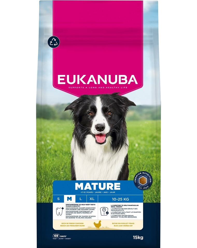 EUKANUBA Mature Medium Breeds Chicken – sausa maistas subrendusiems vidutinio dydžio šunims, turintis šviežio vištienos