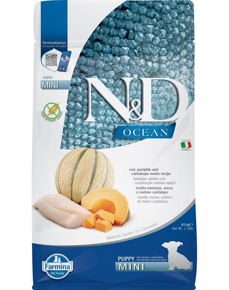 menkė (28 %), dehidratuoti menkės baltymai (27 %), batatai, žuvų taukai (iš silkės), dehidratuoti silkės baltymai, džiovinti moliūgai (5 %), dehidratuotos krevetės (gliukozamino ir chondroitino sulfato šaltinis), žirnių ląsteliena, džiovintos morkos, liucernų miltai, cikorijų inulinas, fruktooligosacharidai, mielių ekstraktas (mannooligosacharidų šaltinis), džiovinti kantalupės melionai (0.5 %), džiovinti obuoliai, džiovinti granatų vaisiai, džiovinti špinatai, Psyllium lukštai ir sėklos, džiovintos mėlynės, natrio chloridas, kalio chloridas, kalcio karbonatas, džiovintos alaus mielės, ciberžolė (0,2 %), alavijo ekstraktas.