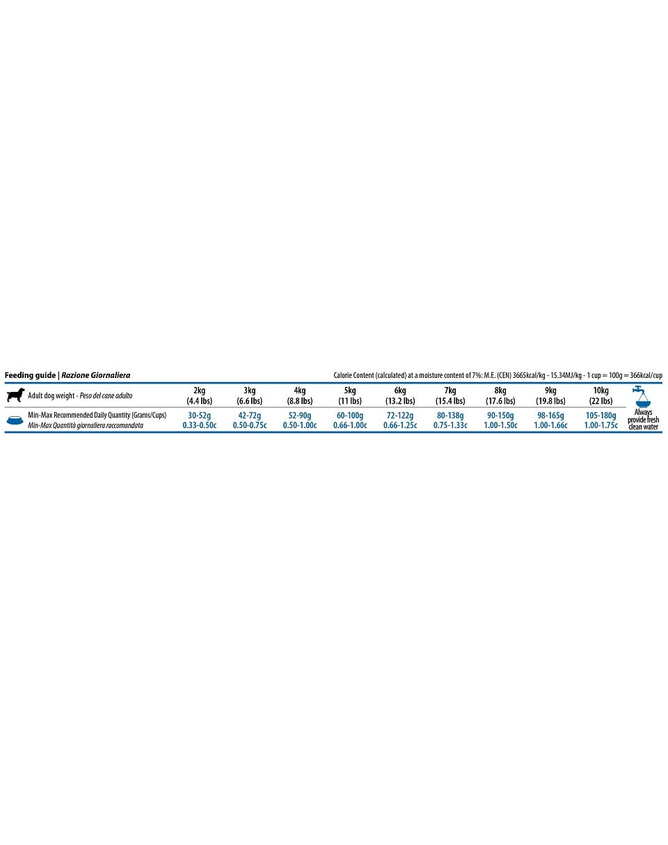 Pasirūpinkite, kad gyvunas visada turėtų pakankamai šviežio vandens prieinamoje vietoje . Šuns dienos maisto norma gali skirtis atsižvelgiant į jo dydį, amžių, aktyvumą ir laikymo sąlygas. Tikslias rekomendacijas rasite ant pakuotės.