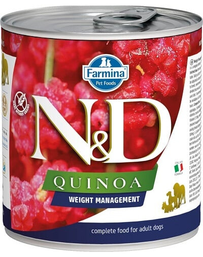 FARMINA N&D Quinoa Dog Weight Management 285 g ėriena šunims, turintiems antsvorio Visavertis dietinis ėdalas suaugusiems šunims, rekomenduojamas viršsvoriui mažinti. / Visavertis dietinis pašaras su ėriena, rekomenduojamas suaugusiems šunims, turintiems antsvorio.