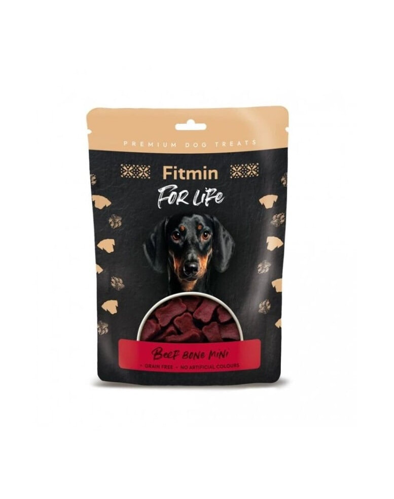 FITMIN For Life Beef Bone Mini yra skanūs, minkšti skanėstai mažų kauliukų pavidalu su ryškiu jautienos skoniu. Dėl savo minkštos konsistencijos jie lengvai sukramtomi, todėl puikiai tinka tiek suaugusiems šunims, tiek šuniukams nuo 6 mėnesių amžiaus.