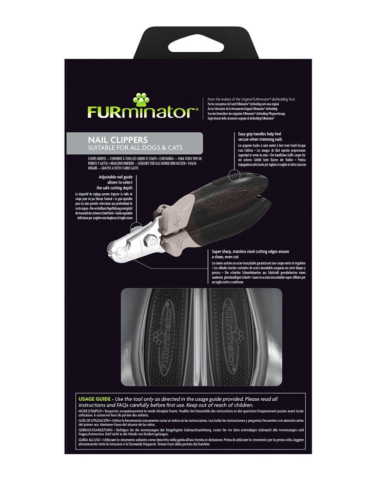 Patogi rankena, gerai priglundanti prie rankos. FURminator nagų kirpimo žnyplės turi užrakto funkciją, kad apsaugotų kraštus, kai prietaisas nenaudojamas.