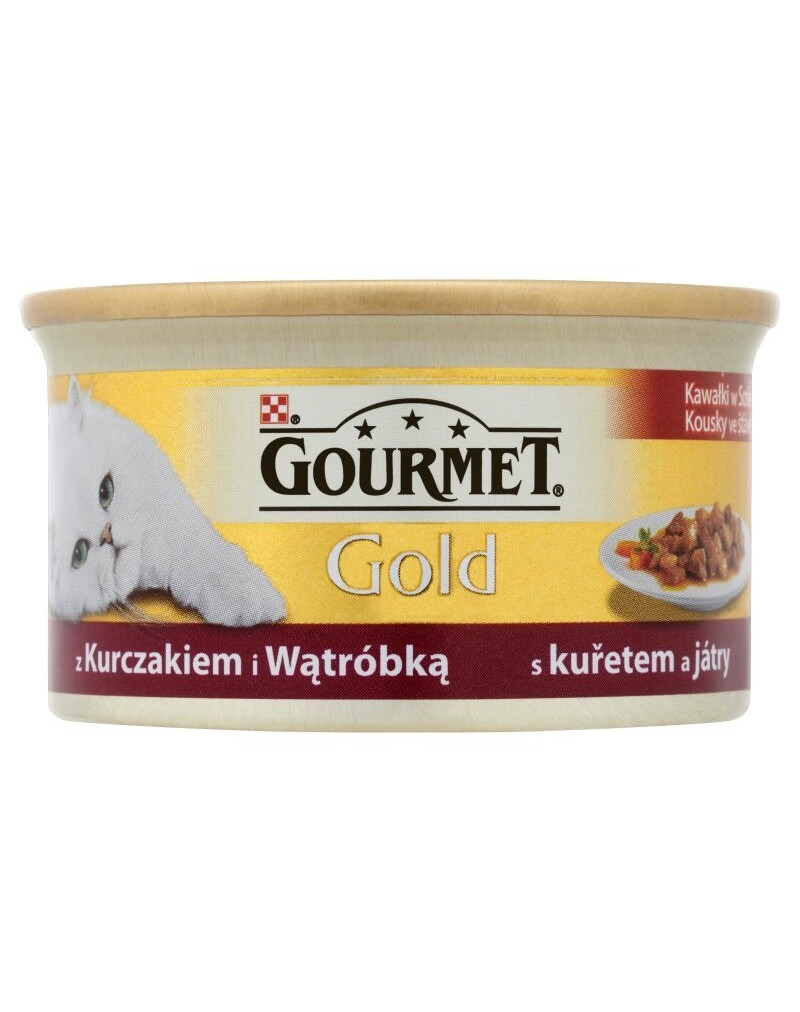 GOURMET Gold kačių maisto gabaliukai su vištienos ir kepenėlių padažu, 6 x 85 g