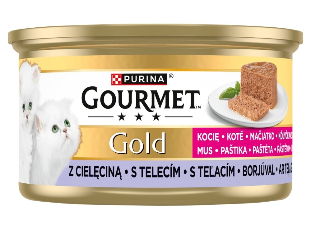 GOURMET Gold Kitten Mus su veršiena yra pilnavertis drėgnas maistas kačiukams, išsiskiriantis švelnia musų konsistencija ir išskirtiniu veršienos skoniu.