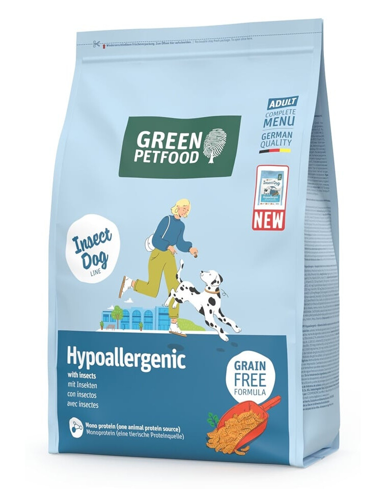 Bezzbožinė, hipoalerginė sausa maistas GREEN PETFOOD InsectDog Hypoallergenic yra pilnavertis maistas suaugusiems šunims, sukurtas specialiai jautriems virškinimo sistemoms ir alergijoms linkusiems gyvūnams.