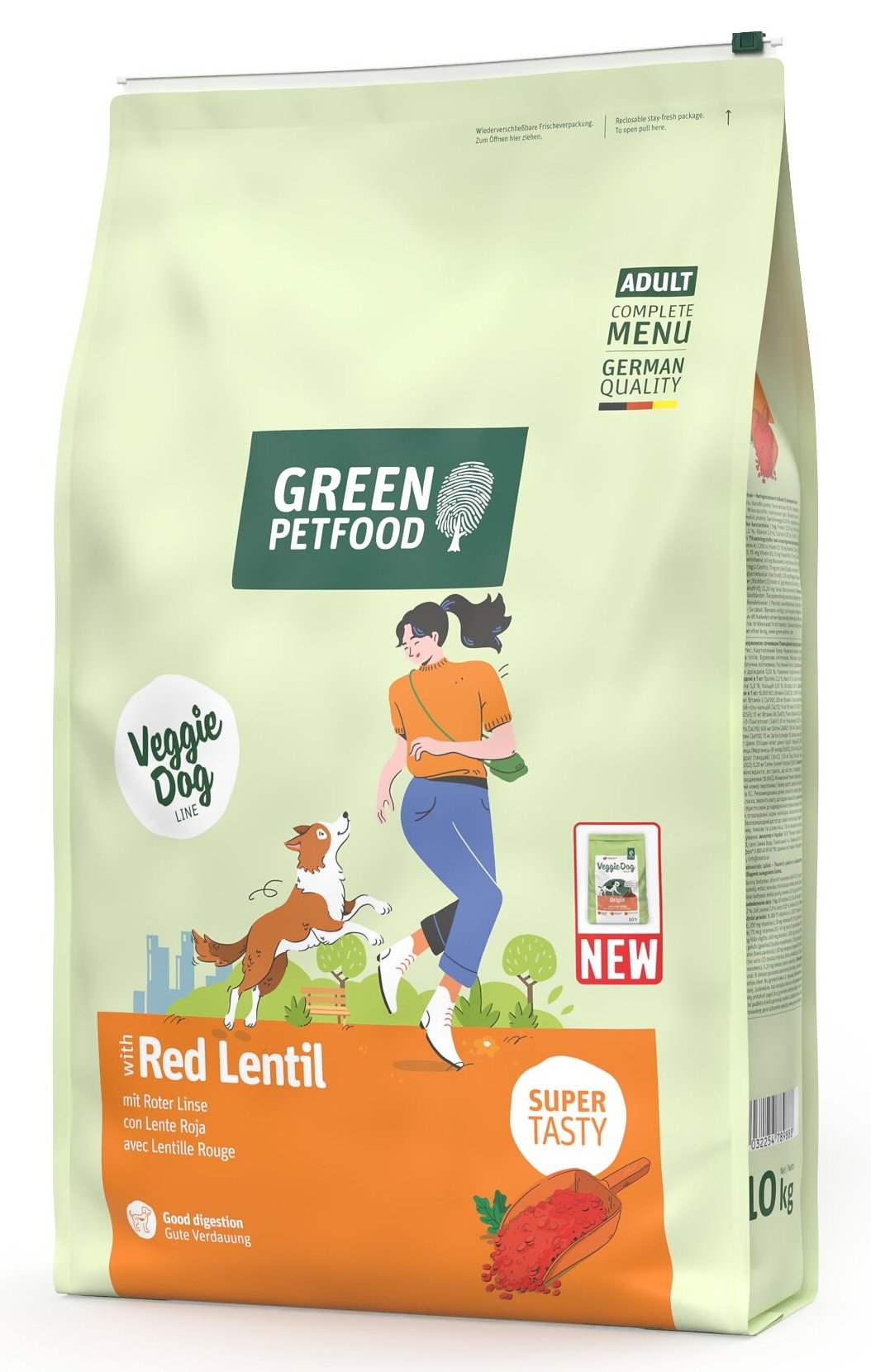 GREEN PETFOOD VeggieDog su raudonąja lęšių – begrūdė, vegetariška maistas šunims