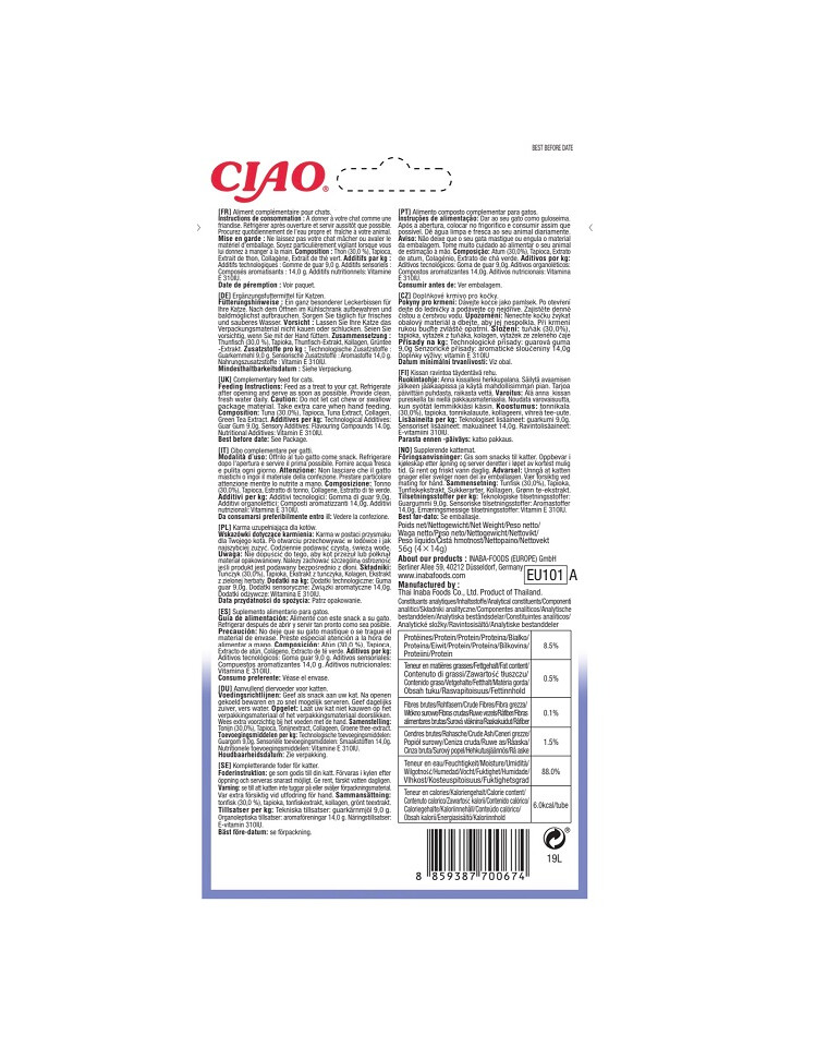 Sudėtis: 30 % tuno, tapijoka, natūralus tuno ekstraktas, kolagenas, žaliosios arbatos ekstraktas