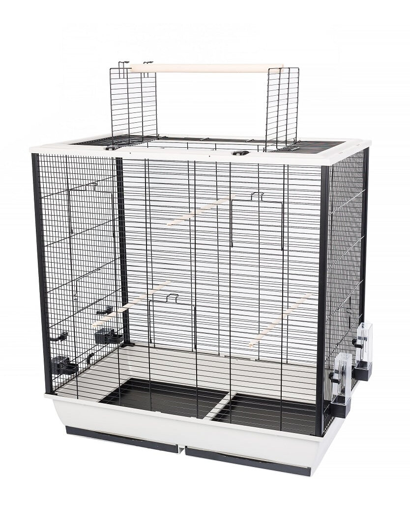 Paukščių narvas. Turi 4 dideles lesyklas ir 4 lesyklėles, kurios yra būtina paukščių narvelio dalis. Ant jų galima ilsėtis ir žaisti, taip pat prie jų galima pritvirtinti žaislą ar paukščio aksesuarą. Narvelio privalumas - gilus kraiko dėklas su dviem stalčiais, todėl lengva išmesti atliekas ir išvalyti dėklą.