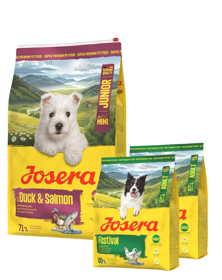 Josera Mini Junior Duck & Salmon – visavertė sausa maistas augantiems mažų veislių šunims Josera Mini Junior Duck & Salmon yra aukštos kokybės sausa maistas, sukurtas mažų veislių šuniukams ir jauniesiems šunims. Jos formulė buvo sukurta taip, kad palaikytų tinkamą organizmo vystymąsi nuo pirmųjų gyvenimo mėnesių. Dėl lengvai virškinamos antienos ir vertingos lašišos derinio, maistas suteikia visų būtinų maistinių medžiagų, palaikydamas intensyvų augimą, smegenų vystymąsi ir stiprių raumenų formavimąsi. Joje esantys omega-3 riebalų rūgštys iš lašišos padeda nervų sistemos veiklai ir pažinimo procesams, o L-karnitinas ir taurinas palaiko sveiką širdies funkciją.