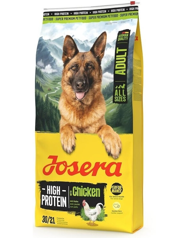 Josera High Protein Chicken yra pasiūlymas suaugusiems visų veislių šunims, turintiems padidintą energijos ir baltymų poreikį. Tai puikiai tinka: