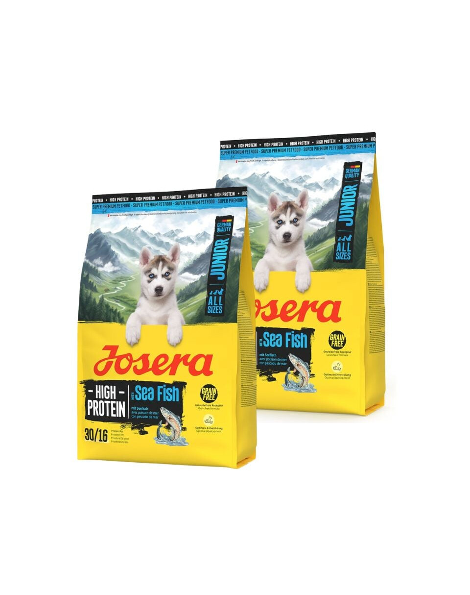 Visavertis sausas maistas, sukurtas jauniesiems šunims visų veislių, kuriems reikia didelio energijos ir baltymų kiekio tinkamam augimui. JOSERA High Protein Junior Sea Fish yra begrūdžių maistas su jūros žuvimi, lašiša ir batatais, užtikrinantis puikų virškinamumą ir skonį. Dėl didelio baltymų ir omega riebalų rūgščių kiekio maistas palaiko raumenų, nervų sistemos ir imuniteto vystymąsi.