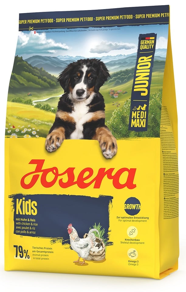 Josera Junior Kids yra specializuotas maistas augantiems vidutinio ir didelio dydžio šunims, kuriems reikia tinkamai suderinto maitinimo augimo laikotarpiu. Jos begluteniška formulė, pagrįsta vištiena ir ryžiais, sujungia lengvą virškinamumą su pilnu maistinių medžiagų rinkiniu.