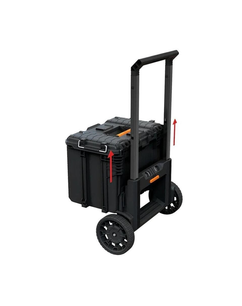Itin erdvi ir funkcionali "ROC Pro Gear 2.0 wheelie box" dėžė buvo perkurta atsižvelgiant į reikliausius naudotojus. Joje įdiegtos naujoviškos funkcijos, pavyzdžiui, nuimama teleskopinė rankena su 9 colių ratukais, kad būtų lengva pakrauti į automobilio bagažinę ir greitai perkelti į kitą XL dėžę. Dėžę taip pat galima pakabinti ant sienos (atlaisvinus teleskopinę rankeną - rankena į komplektą neįeina, L dydis). Tvirta konstrukcija leidžia saugiai gabenti sunkius įrankius, o profiliuotas dangtis leidžia pritvirtinti modulio puses, kad būtų galima dar lanksčiau laikyti įrankius. Dėžė ant ratukų pagaminta iš aukščiausios kokybės plastiko, pasižyminčio dideliu atsparumu mechaniniams pažeidimams ir garantuojančio ilgametį patvarumą. IP65 klasė užtikrina veiksmingą apsaugą nuo vandens ir dulkių, todėl dėžė idealiai tinka naudoti bet kokiomis oro sąlygomis. Ji komplektuojama su praktišku sandėliavimo konteineriu su dangčiu, kuriame galima patogiai sutvarkyti įrankius ir priedus. Funkcionali dėžės šoninio tvirtinimo sistema visiškai suderinama su visomis "Pro Gear 1.0" ir "ROC Pro Gear 2.0" serijos dėžėmis, todėl galite lanksčiai pritaikyti savo įrankių laikymo sistemą. Sukurkite savo profesionalią įrankių laikymo sistemą su "ROC Pro Gear"!
