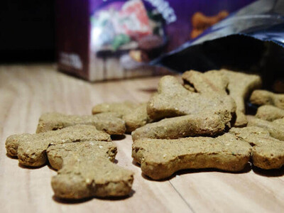 "Mano šunys buvo labai entuziastingi suvalgę vos vieną sausainį! Buvo akivaizdu, kad jiems labai patiko. Jie nesukelia alergijos, bet suteikia daug džiaugsmo mūsų augintinių burnai! Mano atveju jie buvo naudojami kaip atlygis treniruočių metu. Juos taip pat galite naudoti kaip popietinį užkandį savo šuniui. Juos galima skaldyti į mažesnius gabalėlius (viršuje pateiktas sausainio ir penkiapirštės bandelės palyginimas)."