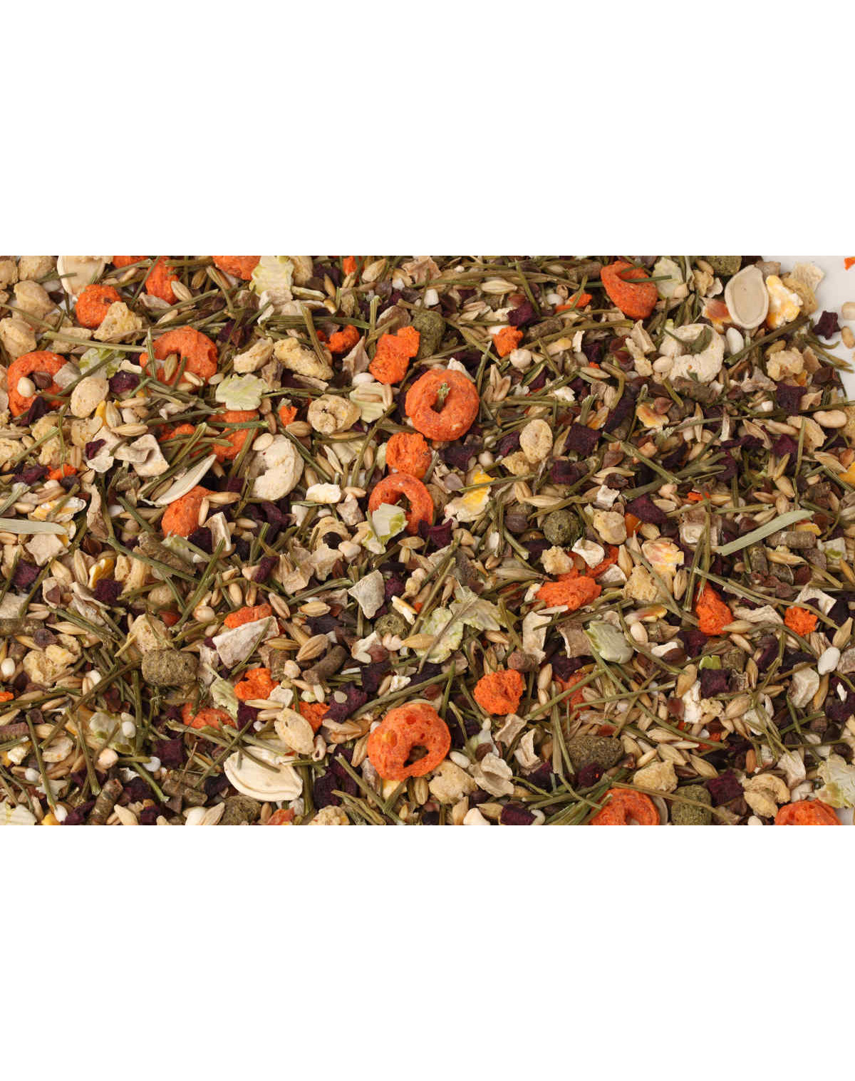 Mišinyje yra žolelių, grūdų ir daržovių (kai kurie specialiai paruošti, atsirandantys natūralioje šių gyvūnų aplinkoje).