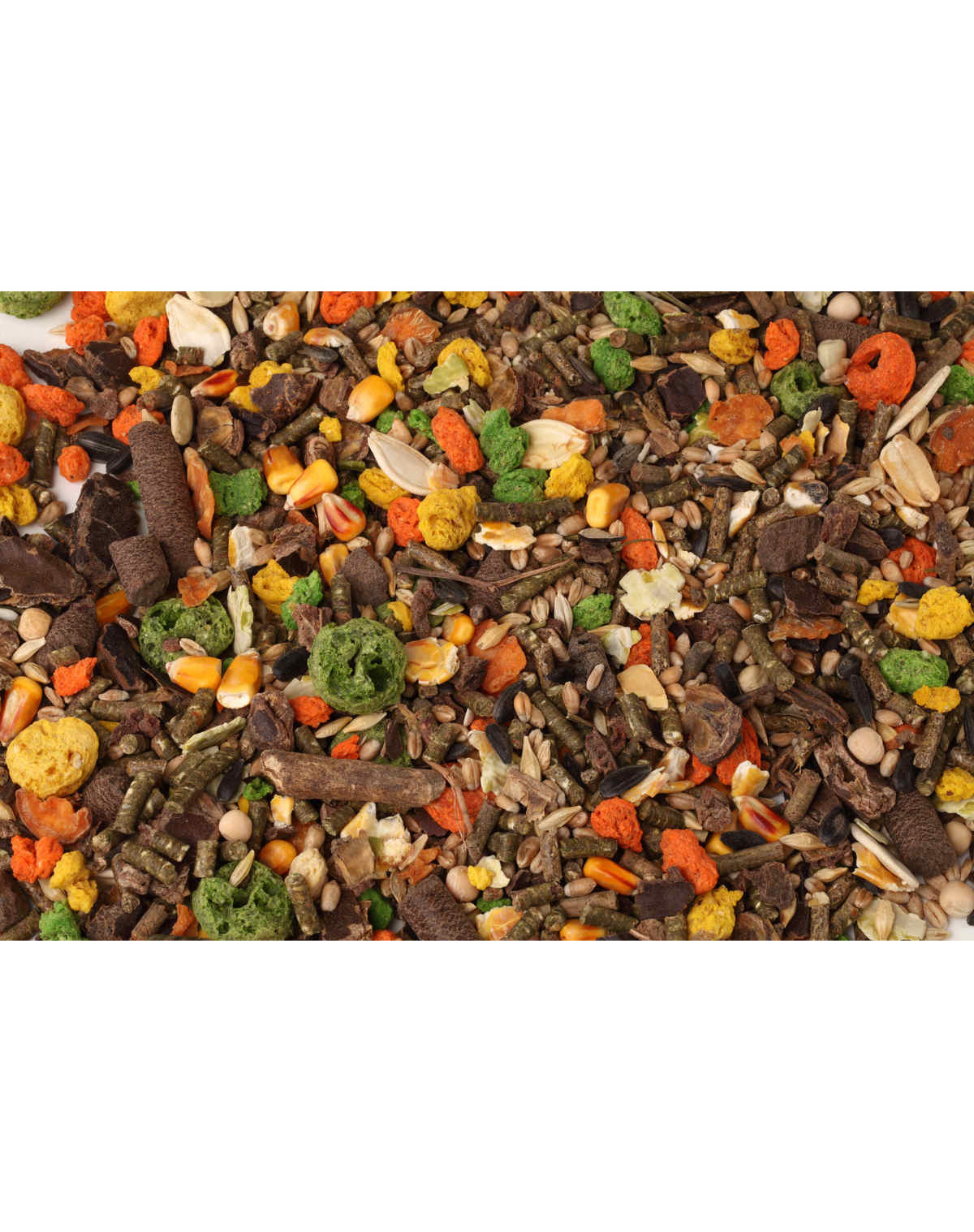 Maistas yra specialiai parinktas grūdų, ankštinių augalų, daržovių ir vaisių mišinys. Tai visavertis graužikų ir triušių maistas.