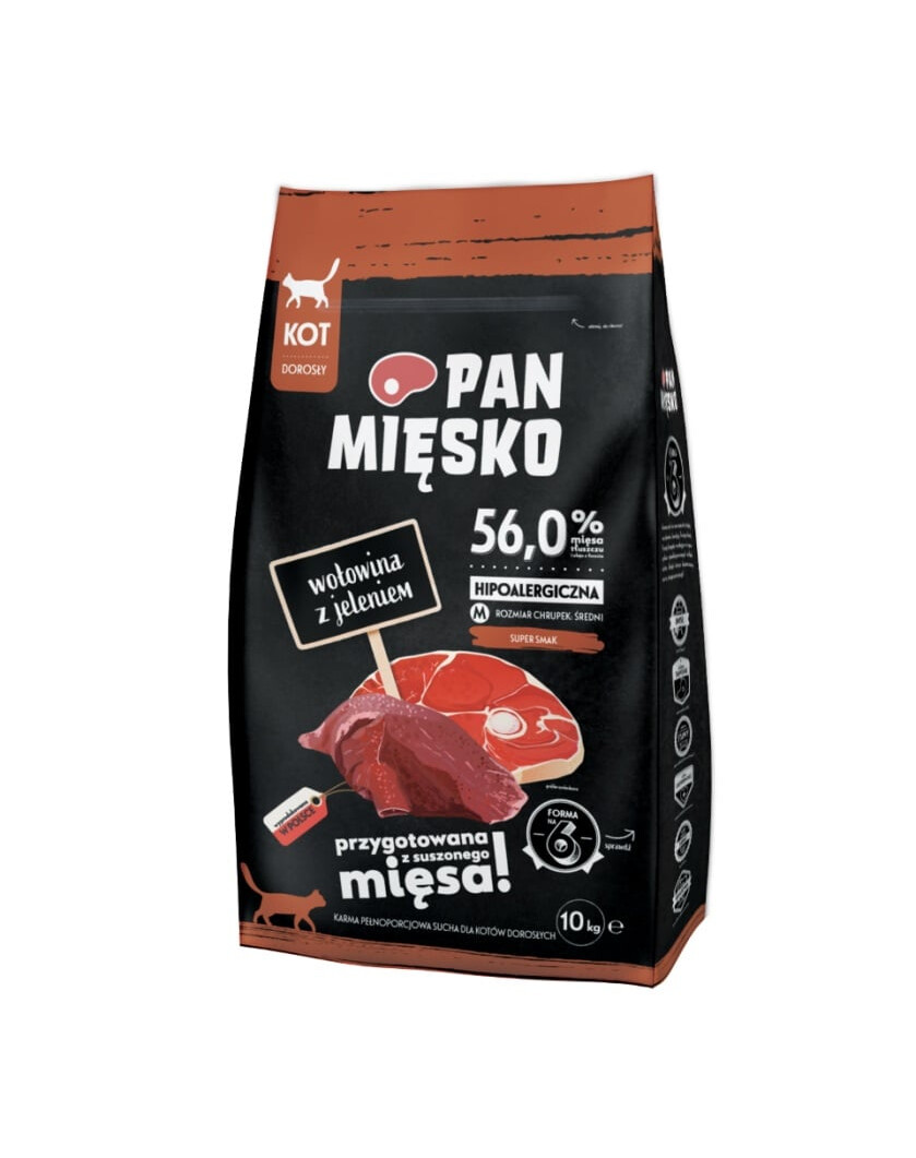 Susipažinkite su hipoalerginiu sausu kačių ėdalu "Pan Mięsko". Jie išsiskiria kruopščiai atrinkta mėsa su sultingais lenkiškais obuoliais, sveikomis daržovėmis ir vertingomis maistinėmis medžiagomis, kurios teigiamai paveiks jūsų katės sveikatą ir būklę. Mūsų receptus parengė specialistai, kad jūsų keturkojis draugas gautų būtent tai, ko jam reikia. Jūsų katė nusipelno geriausio.