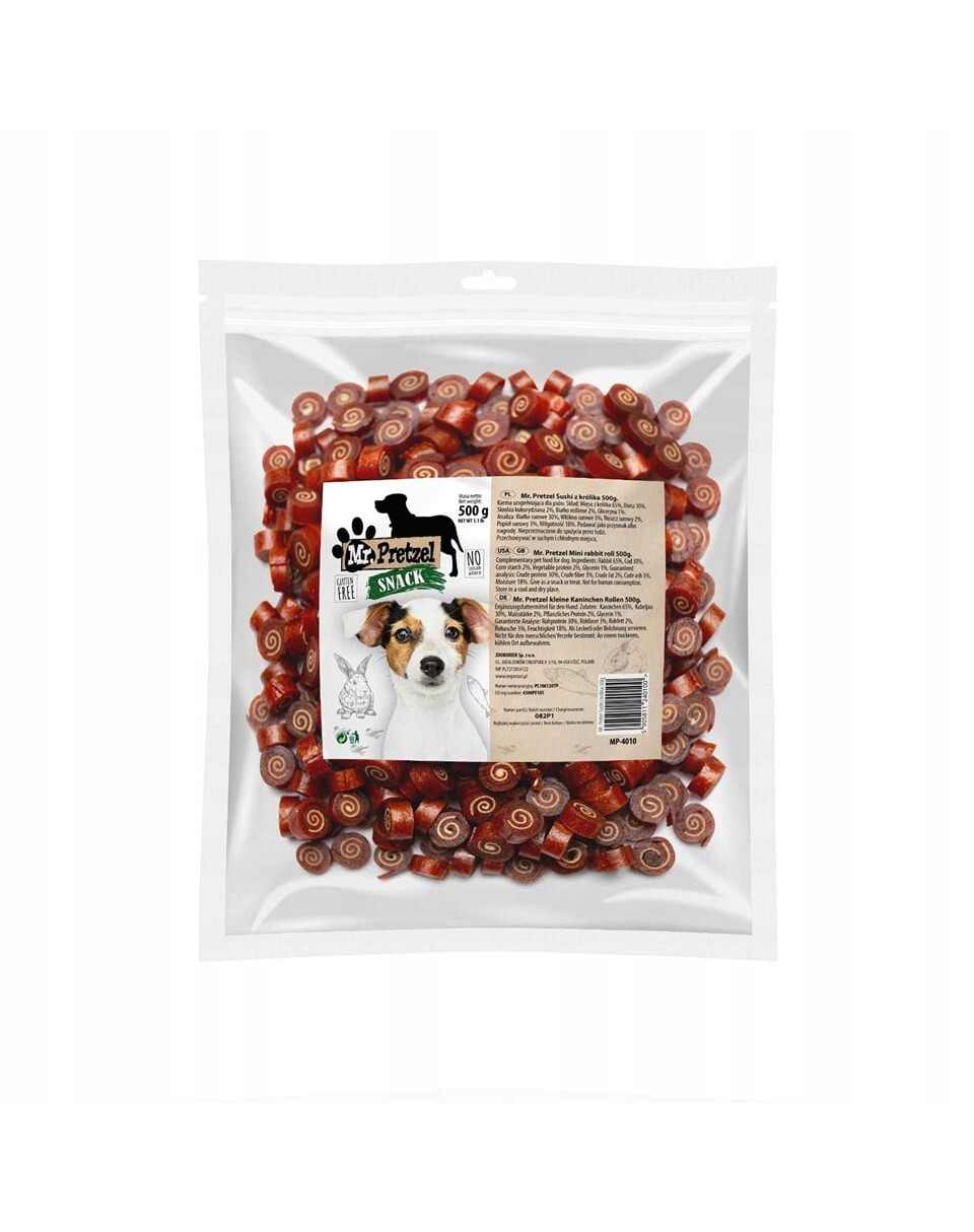 Mažas sushi iš triušio ir menkės, pagamintas pagal Mr. Pretzel, yra išskirtinis premium klasės skanėstas, sukurtas šunims, kurie nusipelno geriausio.